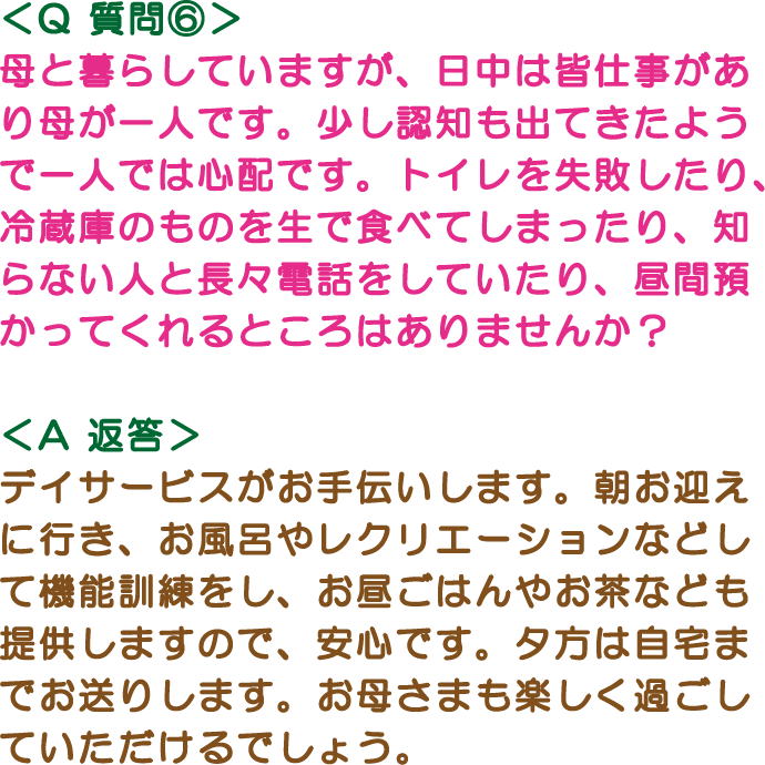 介護が必要なご利用者、ご家族の皆さん、