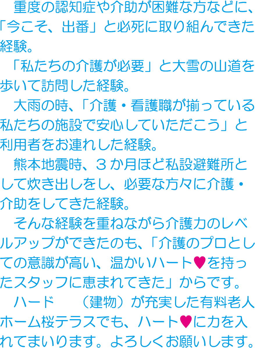 介護良し、スタッフ良し、施設良し、食事良し、景色良し、
