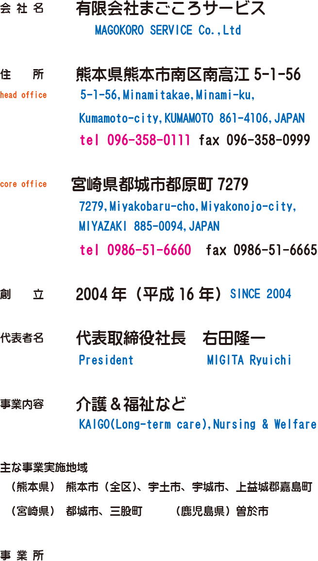 ◎ (head office) MAGOKORO SERVICE Co.,Ltd
